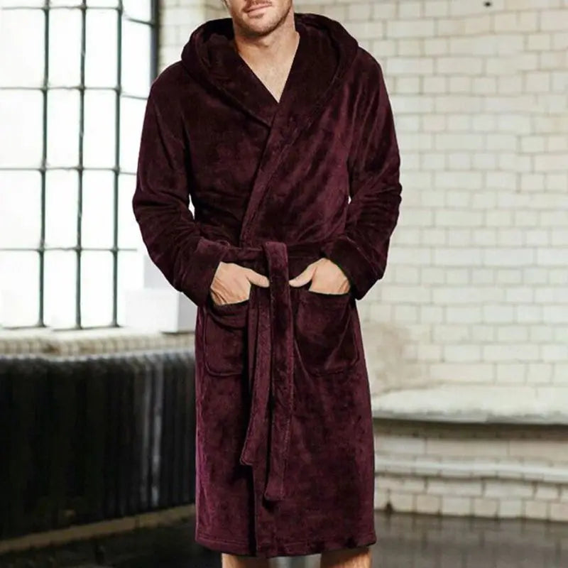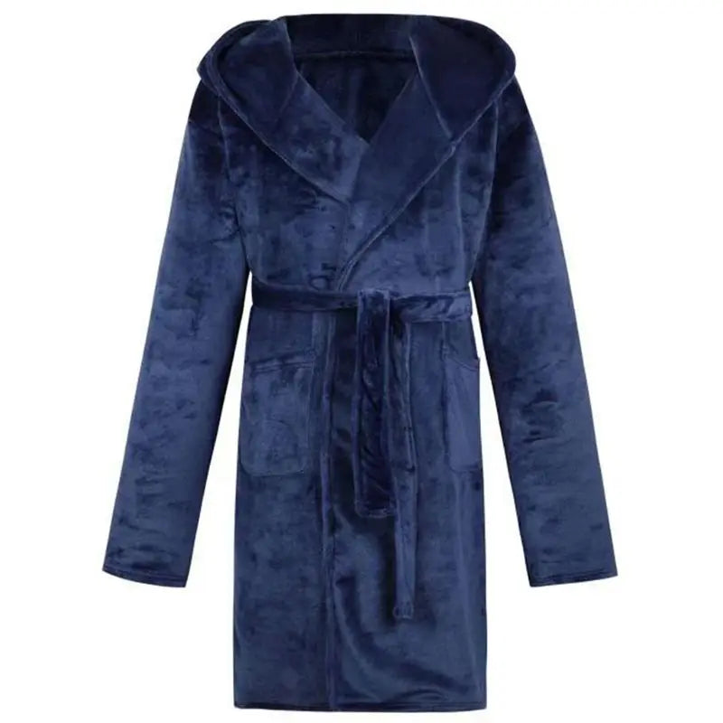 Albornoz unisex con capucha de estilo casual, confeccionado en nailon tipo pana con forro interior de terciopelo doble. Ofrece una sensación cálida, suave y envolvente, ideal para usar después del baño, en casa o en el spa. Su corte holgado proporciona comodidad y libertad de movimiento.
