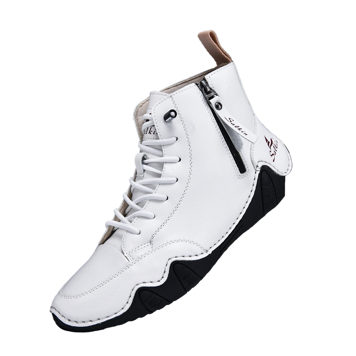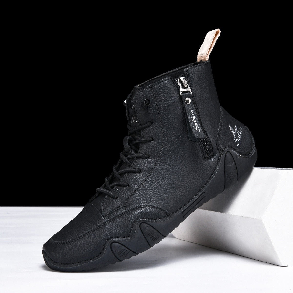 Botines altos de hombre en piel sintética — Estilo Martin artesanal con cremallera lateral
