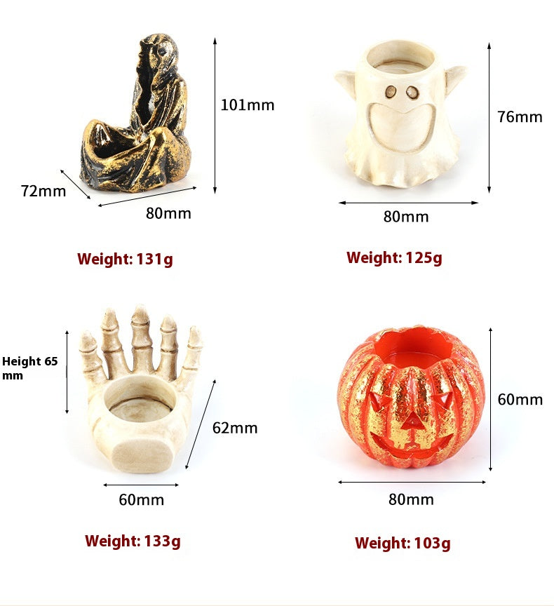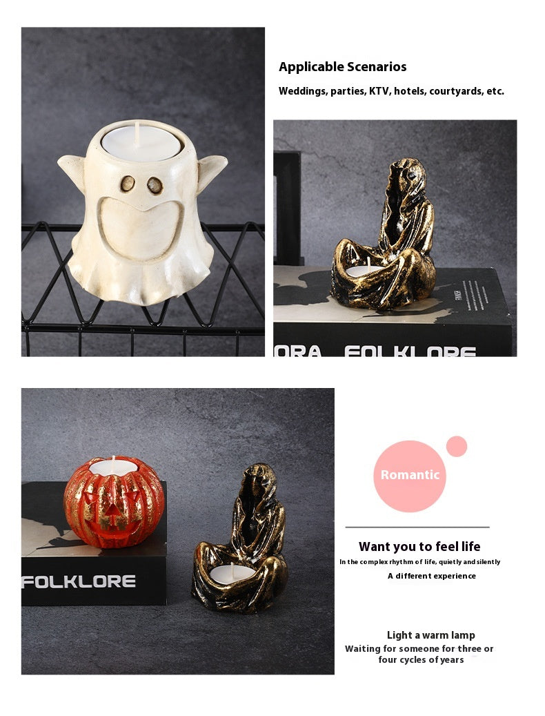 Ideal para crear ambientes acogedores y festivos, este candelabro en forma de calabaza aporta un toque artístico y temático a cualquier espacio. Su diseño en resina artesanal combina estética y funcionalidad, convirtiéndose en un elemento distintivo en la decoración de Halloween.