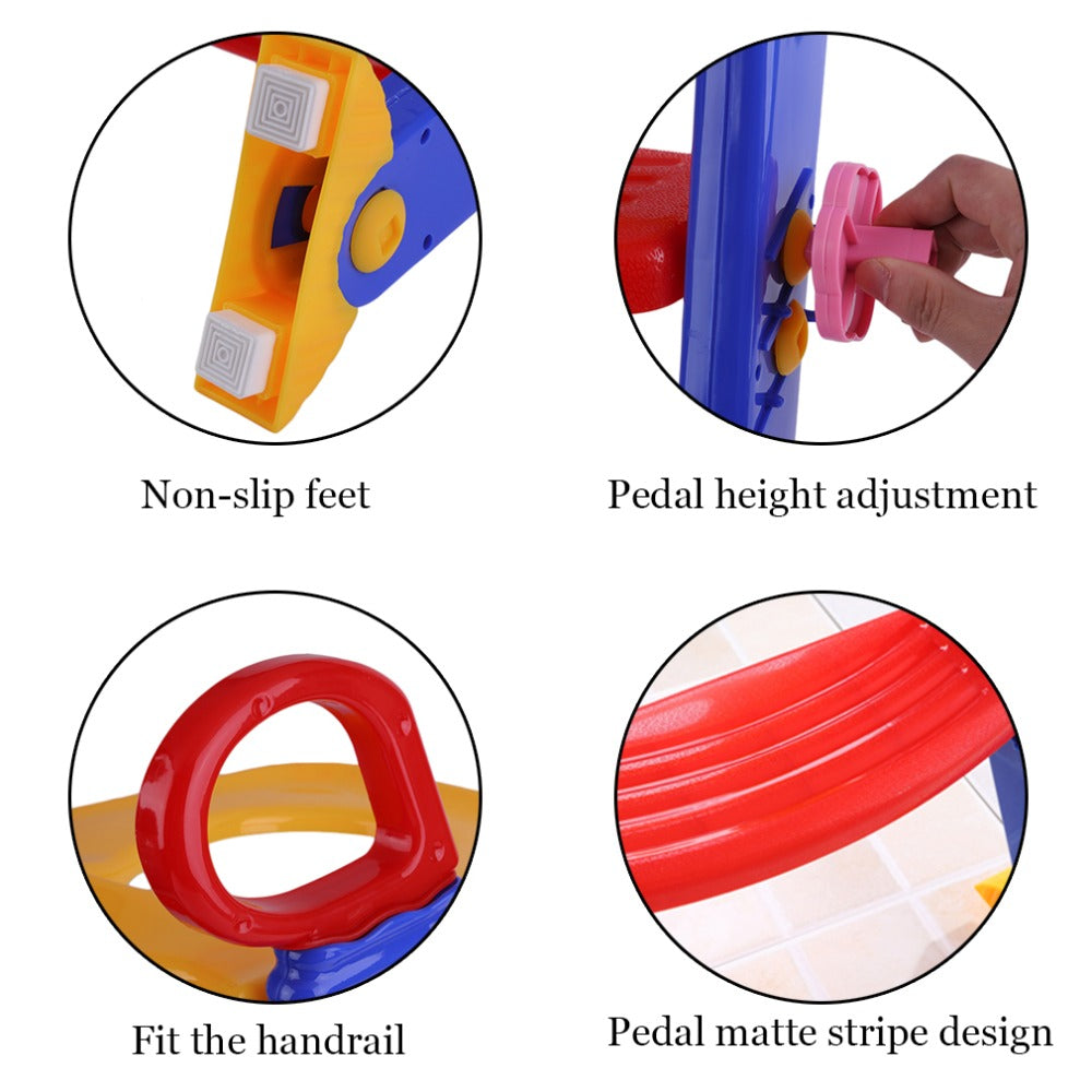 Ideal para ayudar a los niños a ganar independencia en el uso del baño. Ofrece seguridad, confort y facilidad de uso gracias a sus barandillas dobles y escalones antideslizantes.