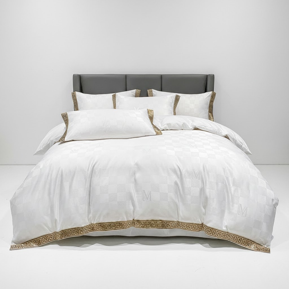 El juego de sábanas de algodón seda ofrece una combinación de elegancia y confort gracias a su tejido jacquard de alta calidad y acabado bordado artesanal. Disponible en versiones de algodón 100 % natural o algodón seda premium, proporciona una textura suave, resistente y agradable al tacto. Ideal para dormitorios modernos, combina estilo, durabilidad y bienestar. Producto seleccionado por OKKO Shop.