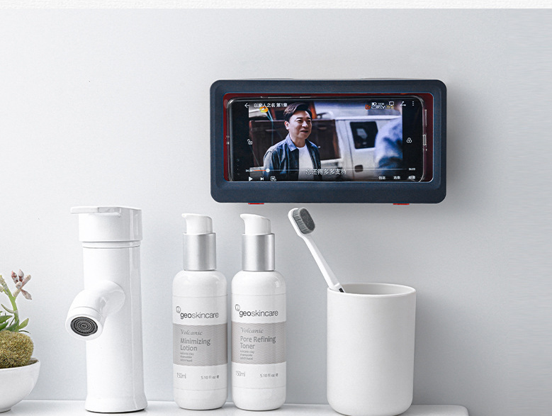 Soporte impermeable para móvil con pantalla táctil ultrasensible y diseño completamente sellado, ideal para usar en el baño, la cocina o el balcón. Permite mantener el dispositivo protegido del agua y del vapor mientras disfrutas de tus contenidos favoritos con total comodidad y seguridad.