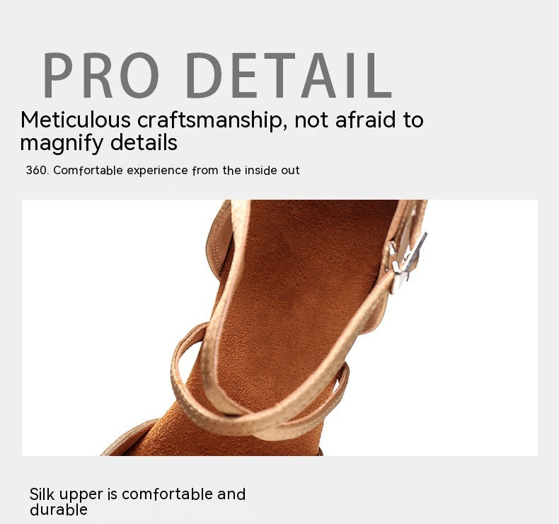 Zapatos de baile latino para mujer fabricados en seda real y cuero natural, diseñados para ofrecer ligereza, estabilidad y confort durante la práctica o competición. Su suela de cuero suave proporciona una pisada antideslizante y silenciosa, ideal para pistas interiores de madera o alfombra. El tacón firme de 5.5 cm o 7.5 cm garantiza equilibrio y postura correcta. El interior ergonómico reduce la fatiga del pie y se adapta perfectamente a la forma del pie para un ajuste cómodo y seguro. Producto seleccionado por OKKO Shop.